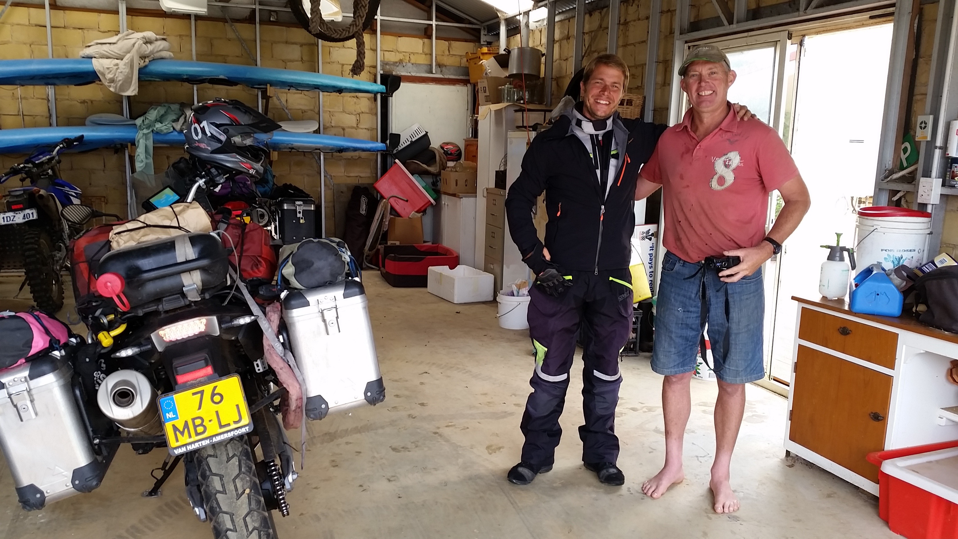 De eerste week op pad in Australië was lekker geweest maar wel erg makkelijk en gestructureerd. Tijd voor wat hardcore outback dirt road riding! Voor de Nullabor is een gebied tussen Esperance en Balladonia waar het erg afgelegen is en wordt gekenmerkt door een aantal verlaten antieke boerderijen die door vrijwilligers zijn opgeknapt en voorzien van meubilair waardoor het voor reizigers zoals wij mogelijk is om daar de nacht door te brengen. Erg grappig om aan te komen rijden en op onderzoek uit te gaan hoe het huis eruit ziet, wat erin staat en waar je ’s avonds je potje kan koken en je bedje neerleggen. Spannend ook omdat we net na aankomst erachter kwamen dat we niet helemaal de enigen waren door de aanwezigheid van een bruine slang, een van de meest giftige en tevens dodelijke van Australië, dat was oppassen dus! De 200km dirtroad tot Balladonia bleek in betere staat te zijn dan verwacht en binnen afzienbare tijd hadden we de smaak goed te pakken en wisten we de kuilen en gaten met een snelheid van zo’n 70km/h te ontwijken en bereikten we de snelweg die het begin van de Nullabor betekent. Even bijtanken en weer verder, althans, dat was als Bjorn zijn kentekenplaat niet was verloren, iets wat niet echt handig is als je je met je motor aan de andere kant van de wereld bevindt. Dus snel weer terug de dirt road op om na 1,5 uur en 30km slakkengang de nummerplaat in goeie conditie op de weg te zien liggen. Na ook weer 30km terug te rijden en wederom de benzine bij te vullen kon de oversteek beginnen!