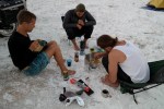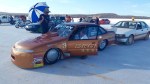 Ondanks ons goeie voornemen van rust dus toch vroeg weer uit de veren om eerst Flinders Range te bekijken en vervolgens om 2 uur ’s middags de tocht naar Lake Gairdner te beginnen die met 2,5uur asfalt en 3,5uur dirtroad iets verder bleek dan gehoopt. Net voor het donker kwamen we uiteindelijk aan en meteen raakten we in gesprek met verschillende teams die elk hun eigen verhaal hadden over de auto’s, motoren, snelheden en andere mooie dingen die ze graag met ons wilden delen. Een goed begin. De volgende ochtend vroeg uit de veren om de eeste race te zien, maar hiervoor moesten we wederom een uur door het mulle zand rijden, een zware opgave zo op de vroege ochtend maar wat een mooi gezicht om dan eindelijk aan te komen rijden op de zoutvlakte waar tientallen teams bezig zijn hun voertuig te prepareren en vervolgens naar de start te gaan om een nieuwe poging te wagen duizelingwekkende snelheden te behalen. En met succes want het snelheidsrecord werd gezet op ruim 420km/h! Vroeeeeeeem!