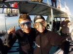 Die ochtend voeren we vroeg uit met nog 7 andere toeristen om deze indrukwekkende beesten te gaan bekijken. Na een uur wachten hadden we mazzel en waren er uiteindelijk 3 witte haaien die om de boot cirkelden. Wat een prachtige beesten en wat een kracht hebben ze in hun lijf. We kregen de mogelijkheid om het water in te gaan en ze onderwater vanuit een kooi te bekijken. Het water was wel ijskoud, 11 graden, maar het was zeker de moeite waard om er even in te gaan en die beesten langs te zien zwemmen. Gierend van de adrenaline kwamen we weer het water uit om op te warmen in de zon. Wat een ervaring!
