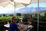Na het spotten van wildlife reden we via een deel van de garden route, Plettenberg baai en Knysna, naar Oudtshoorn voor een ritje op een struisvogel. Jaja je leest het goed! Een hele ervaring om op zo’n grote vogel te mogen zitten. En te bedenken dat vroeger de bosjesmannen (misschien sommige nu nog steeds) zich hierop verplaatsten en zo op hun bestemming kwamen. Hierna werd het tijd om wat heerlijke zuid Afrikaanse wijnen te proeven en reden we naar Franschhoek. Er scheen een wijntram/bus rond te rijden, die je naar 4 wineries naar keuze kon brengen. Wat een super optie en zo hoefden geen van ons te rijden. Een heerlijke dag met verschillende wijnproeverijen en sommige ook in combinatie met spijs!