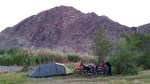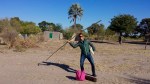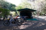 De eerste nacht sliepen we vlak voorbij de grens, omdat we veel tijd hadden verloren met het repareren van de koppelingskabel van de Husq, die vlak voor de grens brak. We vonden een campground bij een lodge en werden ’s nachts goed wakker gehouden door het geknor en het plonzende geluid van de nijlpaarden in de rivier waaraan onze tent stond. Welkom in Botswana waar de mensen nauw samenleven met dier en natuur.
