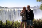 De volgende ochtend gingen we met de auto van de Zuid Afrikaners naar Zimbabwe richting de Victoria watervallen. We besloten de motoren te laten staan, omdat Zimbabwe nogal corrupt schijnt te zijn en met name de politie, die graag boetes uitschrijft voor ieder wissewasje waar ze je ook maar op kunnen betrappen. Na ongeveer 2 uurtjes rijden kwamen we aan. De hoeveelheid water en met welke kracht deze naar beneden stort is ongelooflijk. Na flink nat gesproeid en het grootste deel van de watervallen gezien te hebben, reden we terug naar Botswana. Tijd voor een laatste braai met de Zuid Afrikaners, want die gingen de volgende dag weer verder.