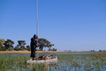 De volgende ochtend werden we met een jeep naar de Mokoro village gebracht. Vanaf hier begon onze boottrip. We vonden een gids, Tebugo, die ons mee wilde nemen de delta in en daar gingen we dan met een vol bepakte Mokoro stroomopwaarts richting een eiland waar we 2 nachten zouden gaan bush campen.