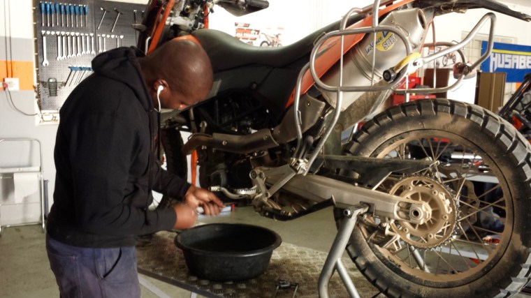 - reparaties Africanos: 2 nieuwe achterbanden, nieuwe ketting KTM, 2x nieuwe luchtfilters, 2x olie + filter vervangen, 2x remvloeistof, 1x balhoofdlagers vervangen, 1x koppelingskabel