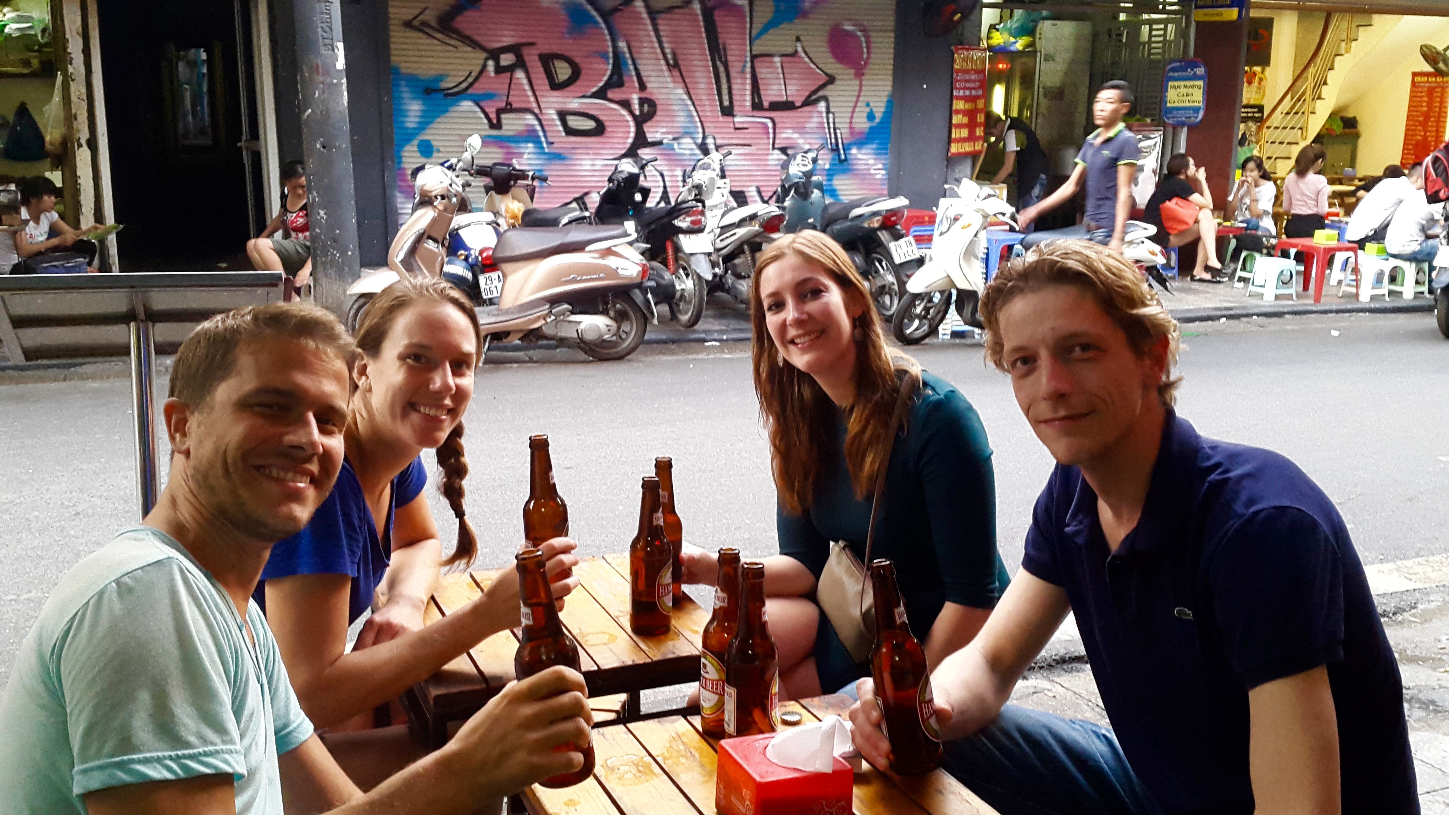Na een korte dag kwamen we aan bij het national park Cat Tien waar we midden in de natuur een eigen bamboe hutje hadden gereserveerd. Ons eigen, dat wil zeggen dat we het moesten delen me het nodige aan kikkers, hagedisjes, muggen en ander (on)gedierte. Ondanks dat heerlijk gegeten en geslapen, en de volgende dag voordat we het verkeer van Ho Chi Minh zouden trotseren nog even wandelen in de jungle. Of we lange sokken mee wilden van het hotel tegen het ongedierte? Nee, dat was toch niet nodig…? Nou, en dat hebben we geweten. 2 uur en 50 bloedzuigers later kwamen we leeggezogen de jungle weer uit, maar het was het meer dan waard geweest. Wat een super mooie, oude bomen! Tientallen meters wortels die zich tot wel een meter boven de grond uitstrekten. Erg indrukwekkend! Na deze wandeling redden we het om op onze bastards voor het donker aan te komen in Ho Chi Minh, beter bekend als Saigon. Tijd om onszelf te ‘belonen’ voor het harde werk de afgelopen 6 maanden en dus 1 van de betere restaurants van Saigon gemaild voor een tafeltje. De Frans/Vietnamese fusion kaart zag er goed uit en dus besloten we ons te laten verrassen met 7 gangen heerlijkheid. Vergezeld van goeie wijn, iets wat we sinds ons vertrek uit NL niet meer gedronken hadden, bleven de gerechten maar doorkomen. Heerlijk om weer eens lekker in de watten gelegd te worden na een half jaar back to basics te zijn geweest!